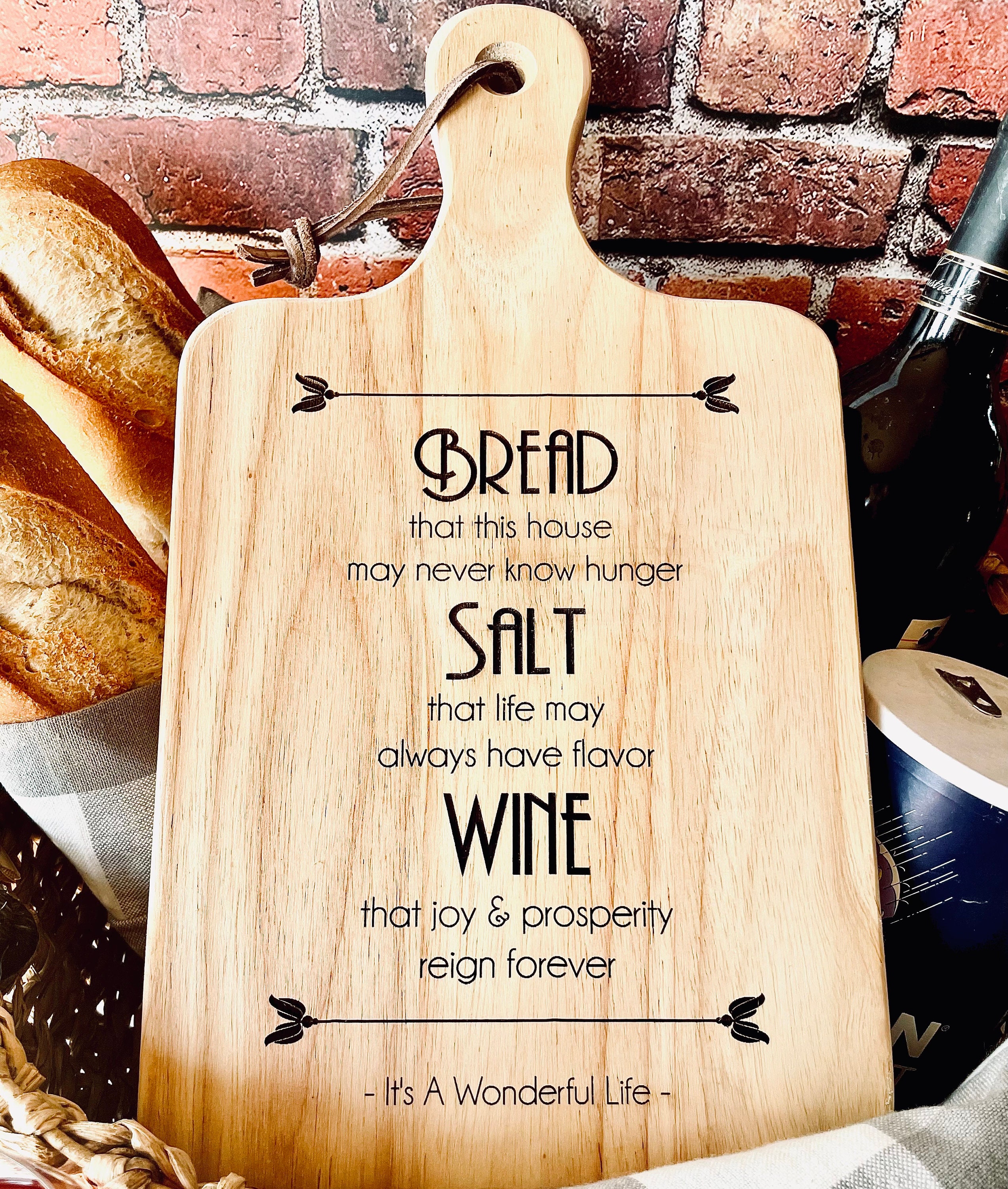 Amazon Com Engraved Wood Cutting Board Housewarming Gift Bread Salt Wine Poem Quote From It S A Wonderful Life Realtor Closing Gift Idea 9 5 X 13 Charcuterie Butter Board Home Kitchen